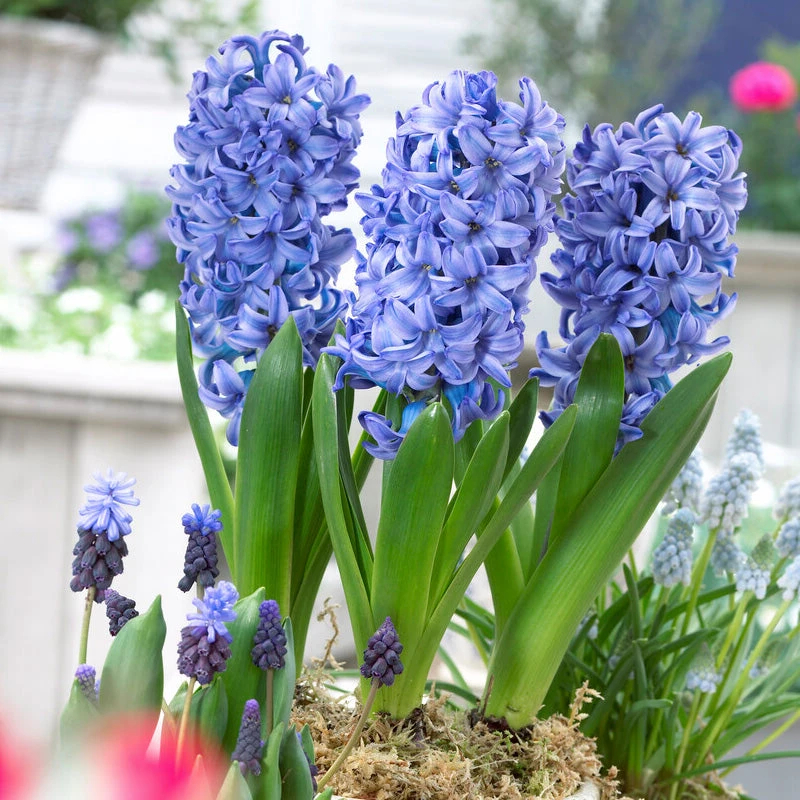 Collection of the following bulbs to create a mass of blue blooms:Â Muscari armeniacum, Anemone Blue Shades, Hyacinthus Delft Blue, Allium caeruleum