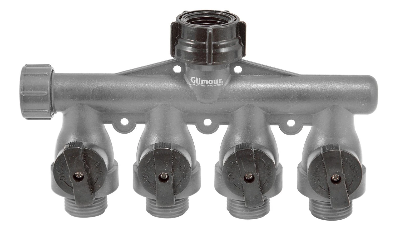 Multi-connectors allow the gardener to connect to four hoses without removing drip systems. Each shut-off works independently.