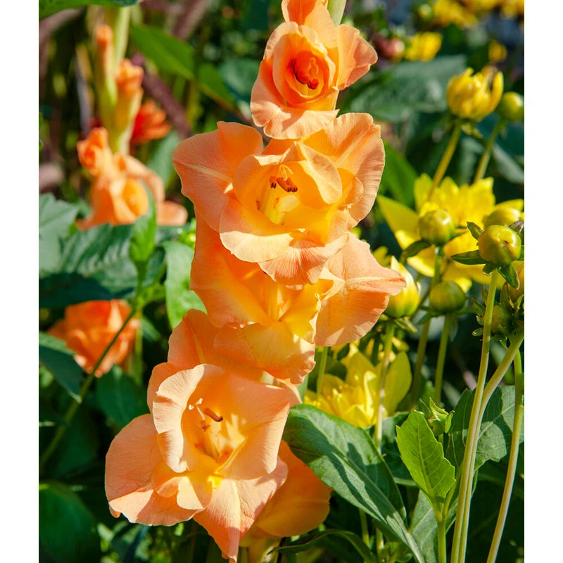 Gladiolus flowers are a great addition to the yard for cut flowers or to add spikes of color to your landscape. They grow as perennials in zones 7 and above or in zones 6 and below they can be be grown as annuals or the corms can be lifted in fall and replanted the following spring (it may take 2-3 years to produce blooms again). Feed with a high quality flower and bulb fertilizer during the growing season.