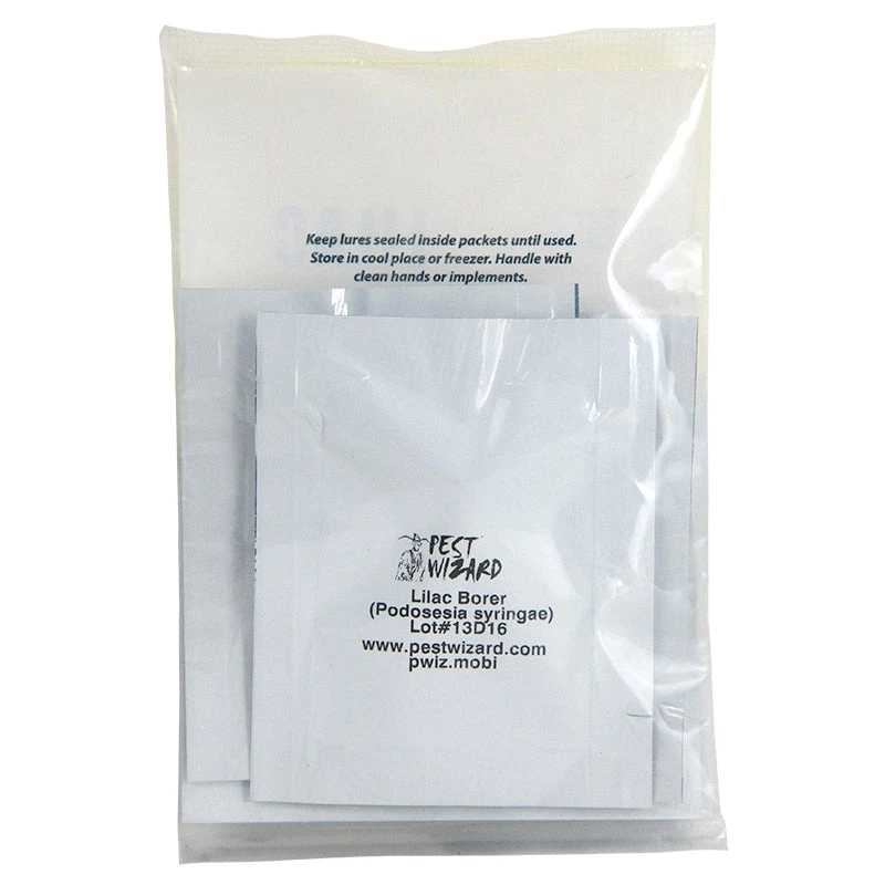 Lure attracts the male Lilac/Ash Borer. The female will lay eggs in crevices in the bark and the larvae (caterpillars) cause extensive damage to the lower part of the tree/plant. Trees that are under stress are typically the host. Effective tool for monitoring pest activity.