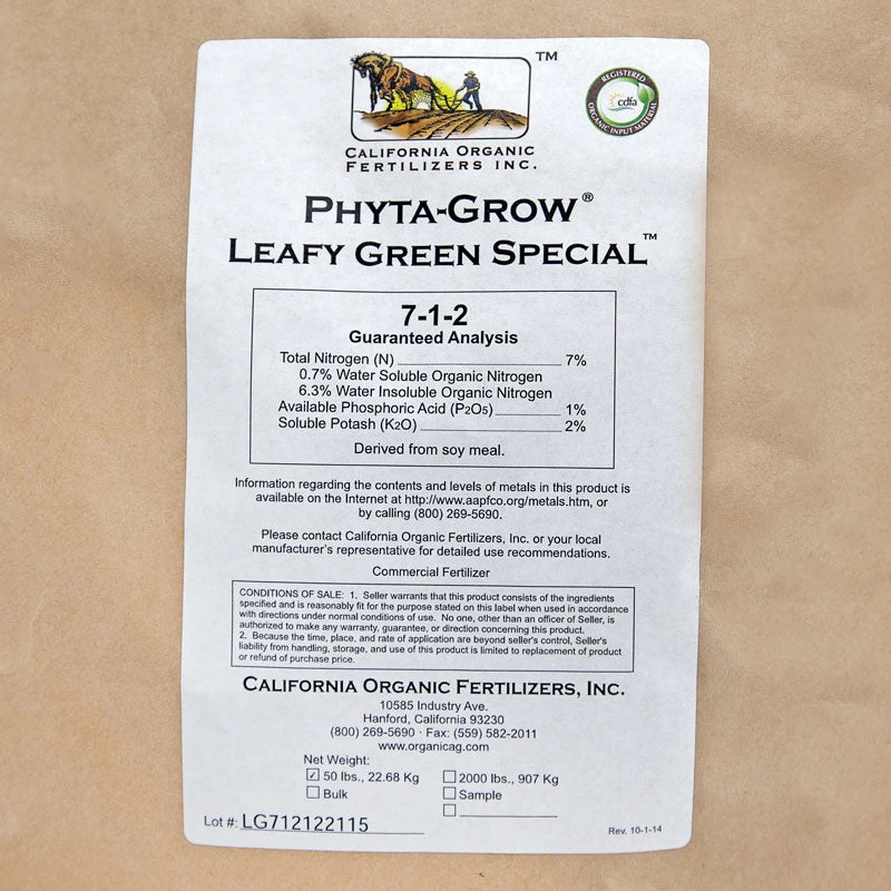 - A pelletized fertilizer derived entirely from organic soybean meal.