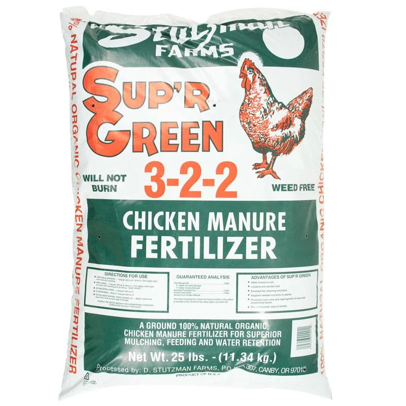 Not a raw manure, this chicken manure fertilizer goes through a 3-6 month composting process and it will not burn, but does have a fairly strong odor.